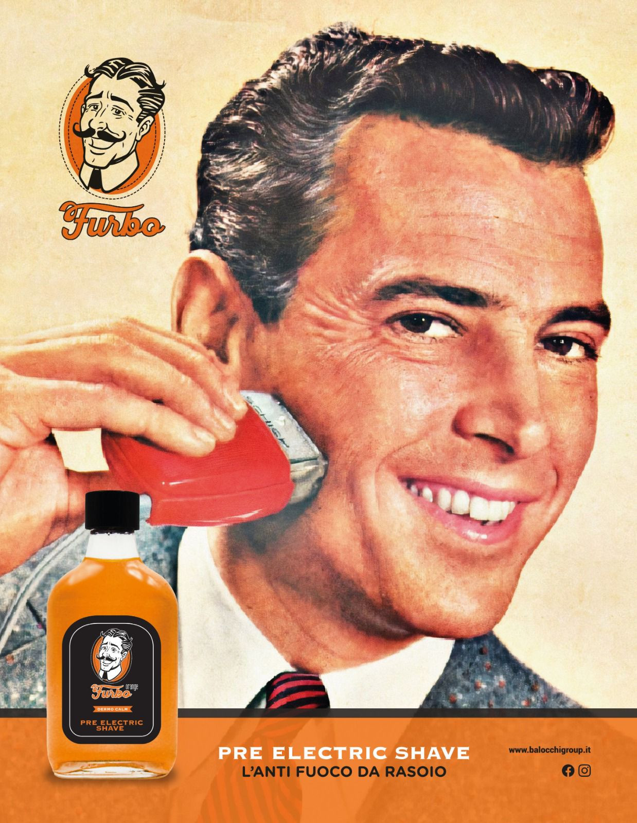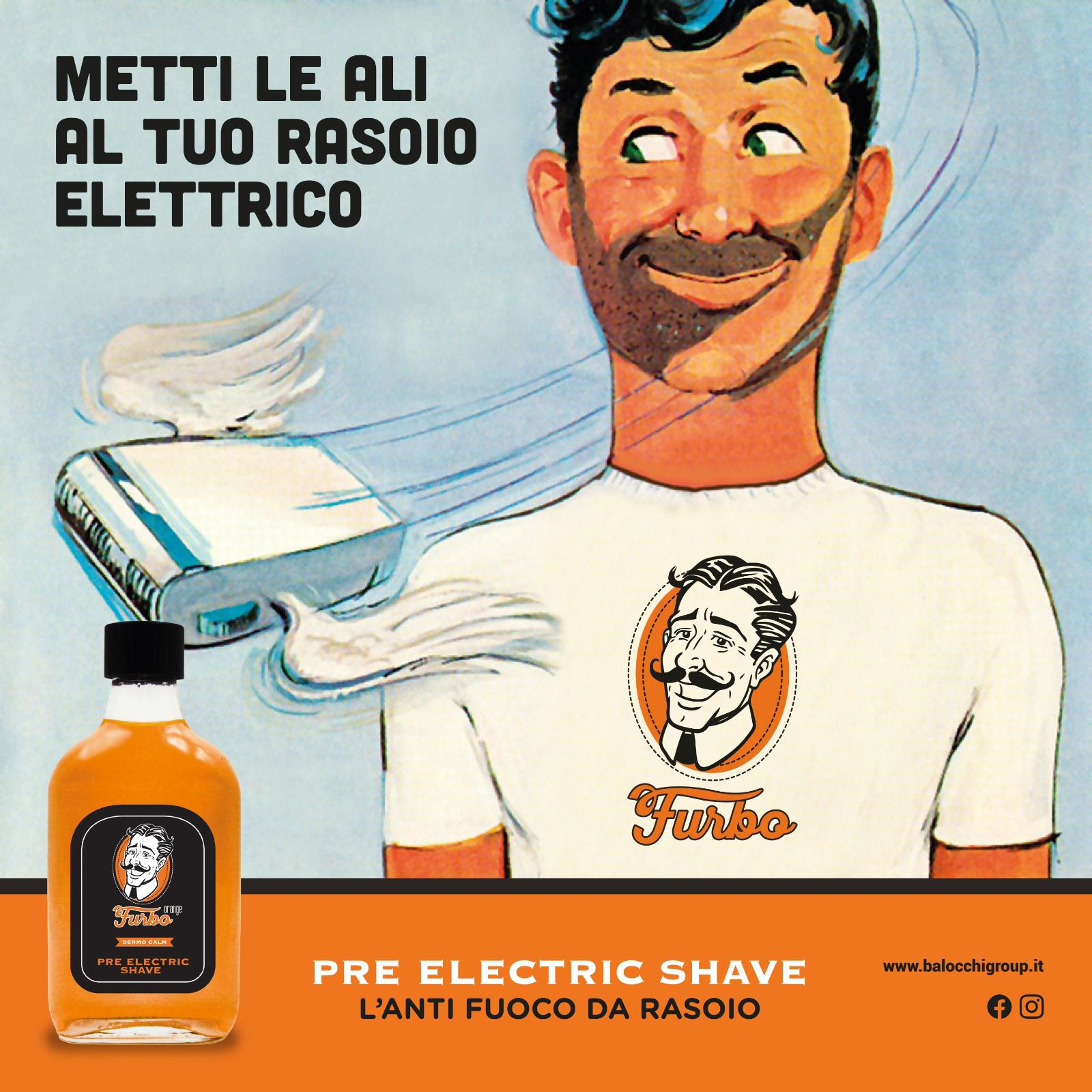 Il Pre Electric Shave Furbo, applicato sulla pelle asciutta, aumenta la scorrevolezza del rasoio,